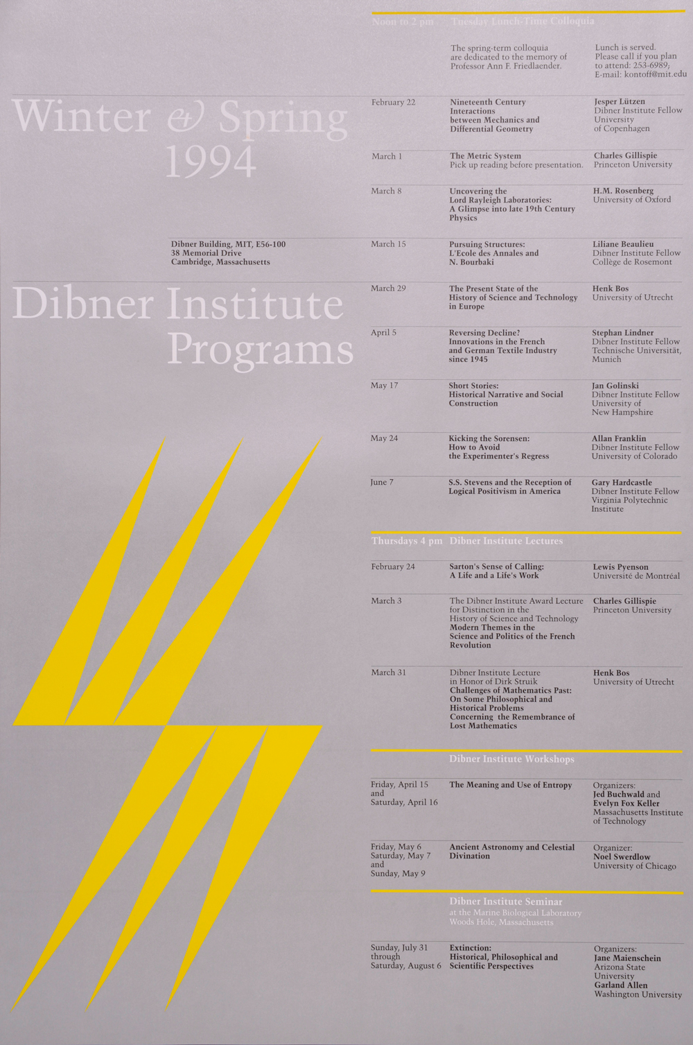 Dibner Institute Programs Winter & Spring 1994